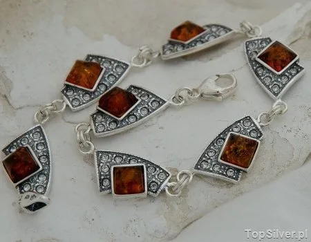 GIOCO - srebrna bransoletka z bursztynem i kryształkami