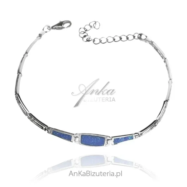 Bransoletka srebrna z niebieskim opalem i greckim wzorem
