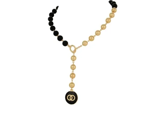 Naszyjnik - krawatka z onyksów i kulek z plasterkiem (C23/KOR/189AU)