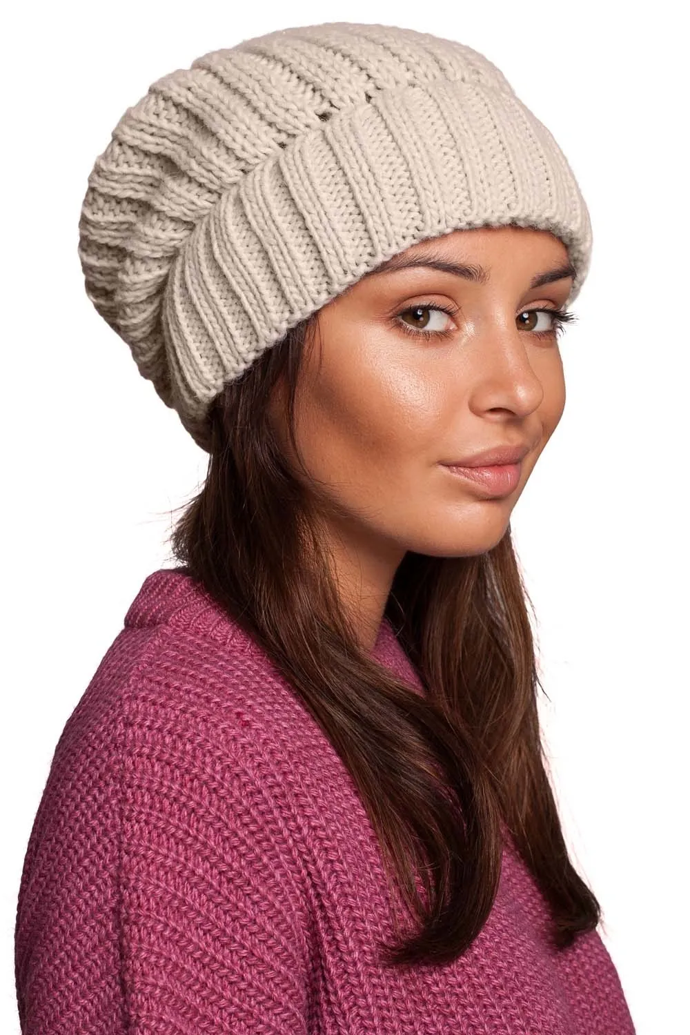 Ciepła Czapka z Wywijanym Mankietem - Beżowa