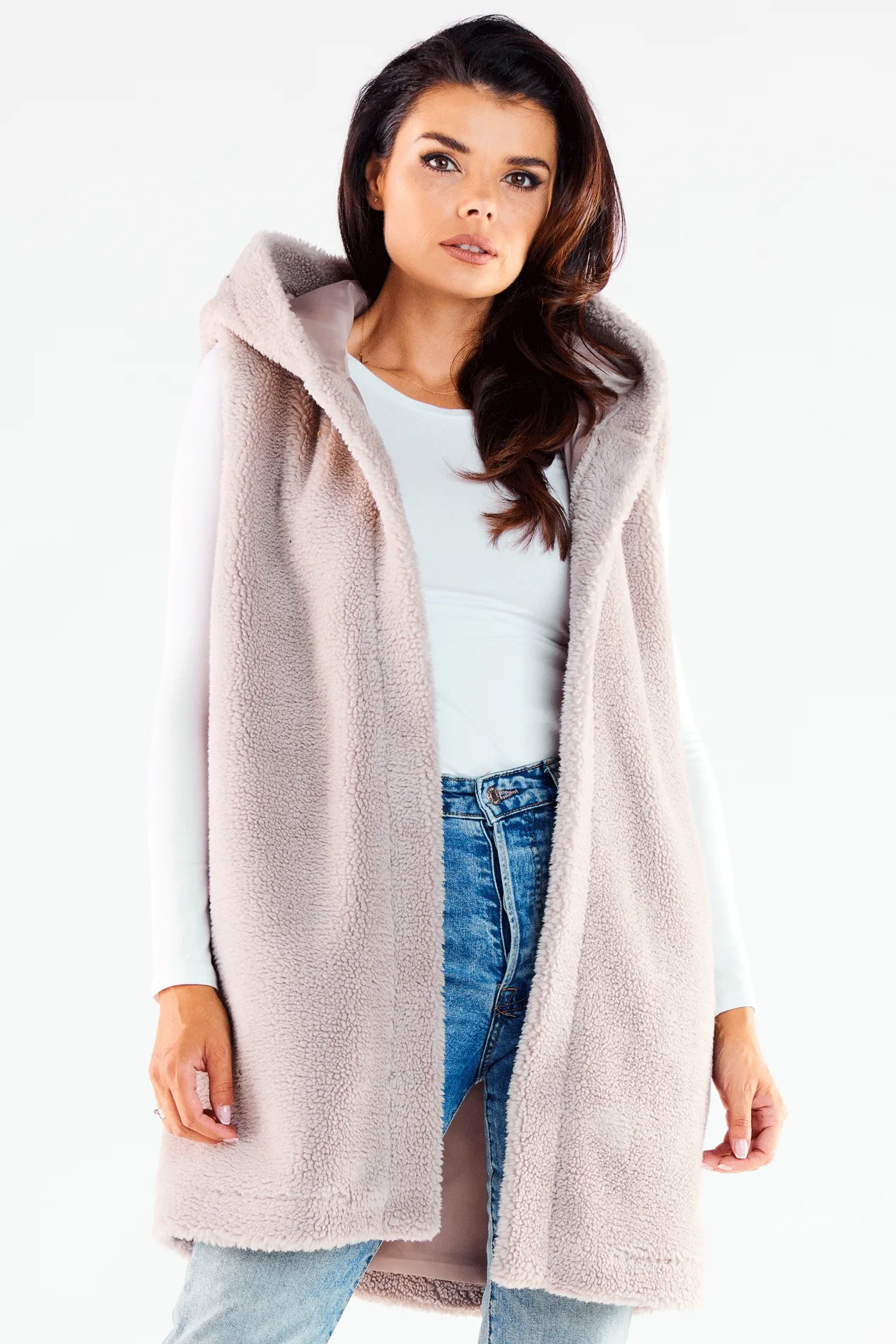 Ciepła Kamizelka z Kapturem - Beżowa