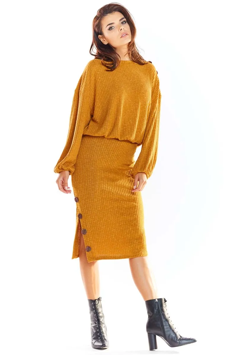 Kamelowy Nowoczesny Oversizowy Sweter z Guzikami