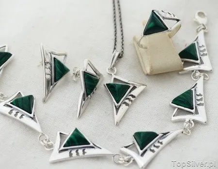 Wytworny zestaw srebrnej biżuterii, oksydowane elementy, w których niezwykle delikatny ażurowy wzór wkomponowano piękny bałtycki bursztyn o koniakowym zabarwieniu. Biżuteria wykonana została z dbałością o każdy szczegół. Wymiar pojedyńczego motywu zdobniczego: 10 x 12 mm Srebro: 925 W skład zestawu wchodzą: bransoletka, kolczyki, wisiorek oraz pierścionek. Kupując w komplecie oszczędzasz!