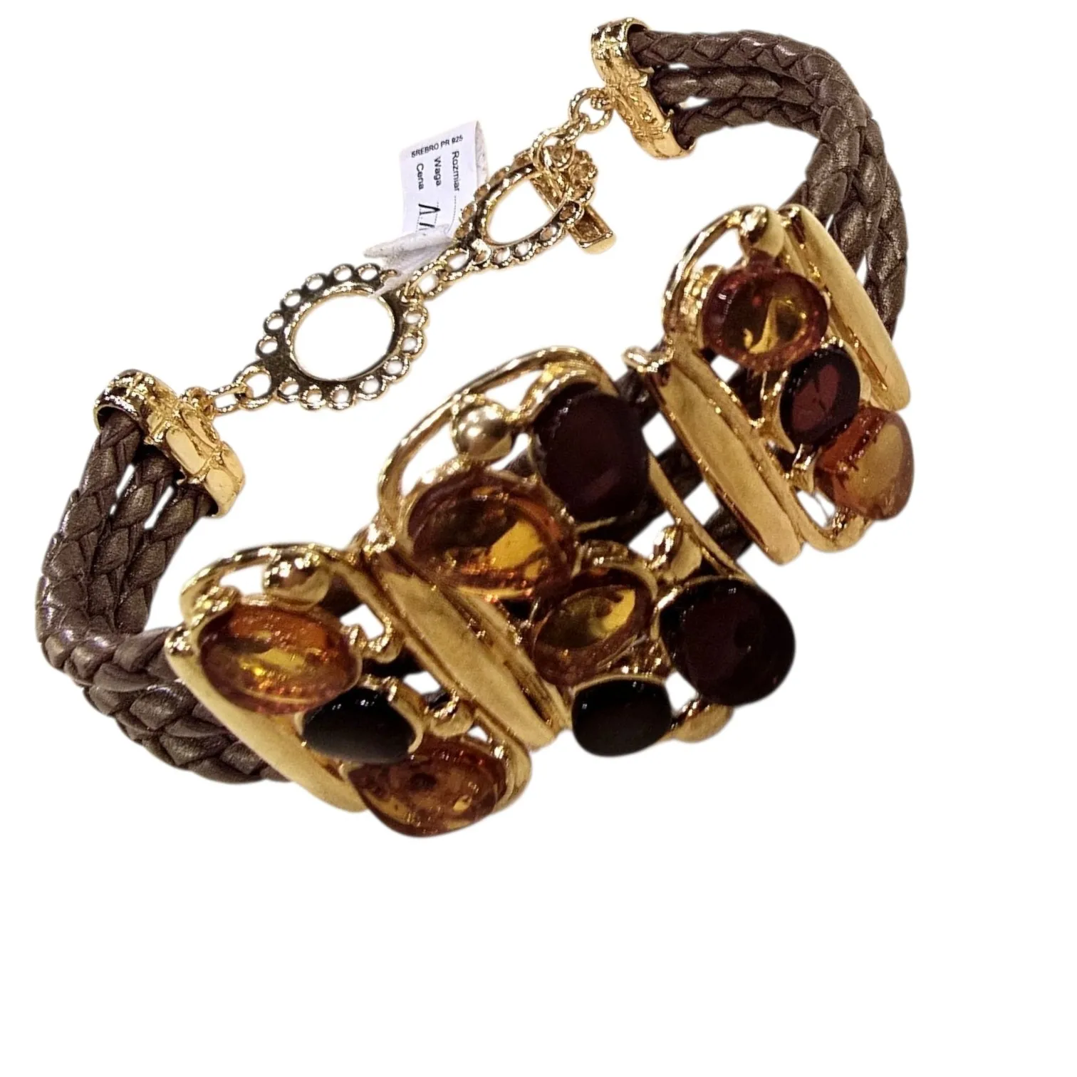 1 320,00 złCudna bransoletka z bursztynu i srebra na skórzanym beżowym pasku