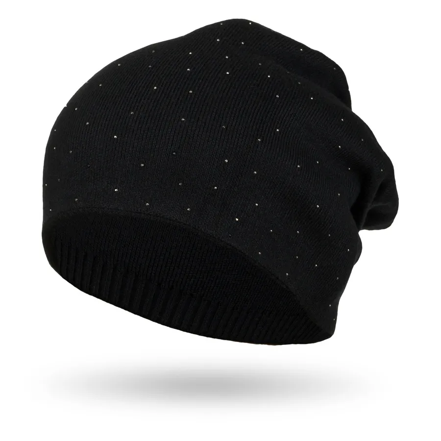 Stylowa biała czapka damska Peterson, wykonana z ciepłego i miękkiego materiału. Ozdobiona subtelnymi kryształkami, idealnie łączy elegancję z wygodą. Doskonała na chłodne dni jako klasyczny, zimowy dodatek.