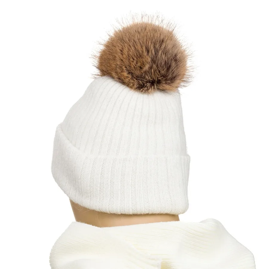 Uniwersalna czapka damska Peterson w kolorze szarym, wykonana z miękkiego akrylu i angory, ozdobiona błyszczącą nitką i puszystym pomponem ze sztucznego futerka. Idealna na zimę, zapewnia ciepło i elegancję w chłodne dni.
