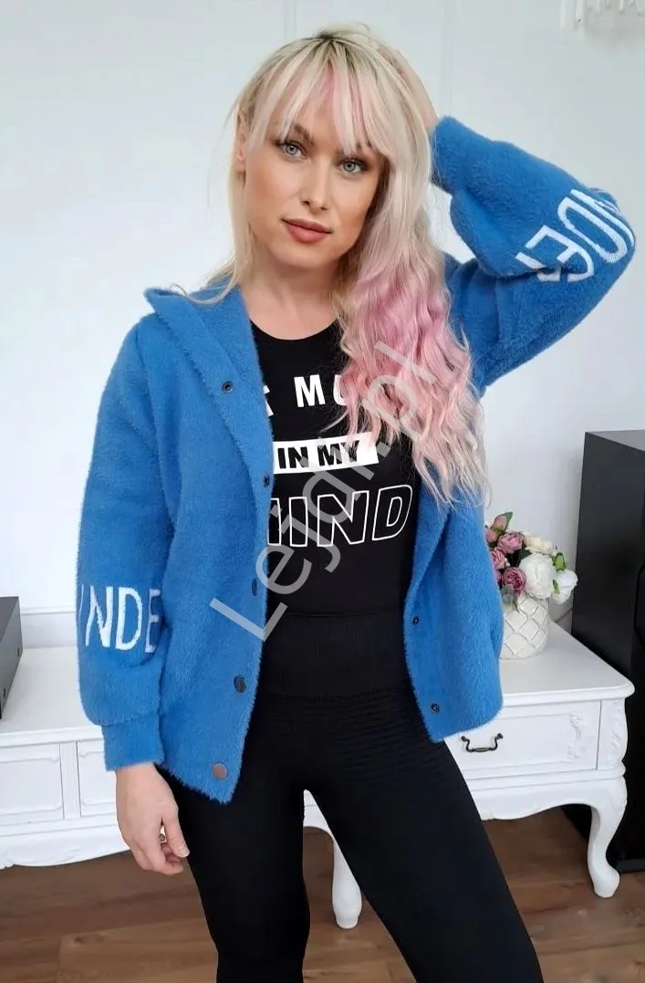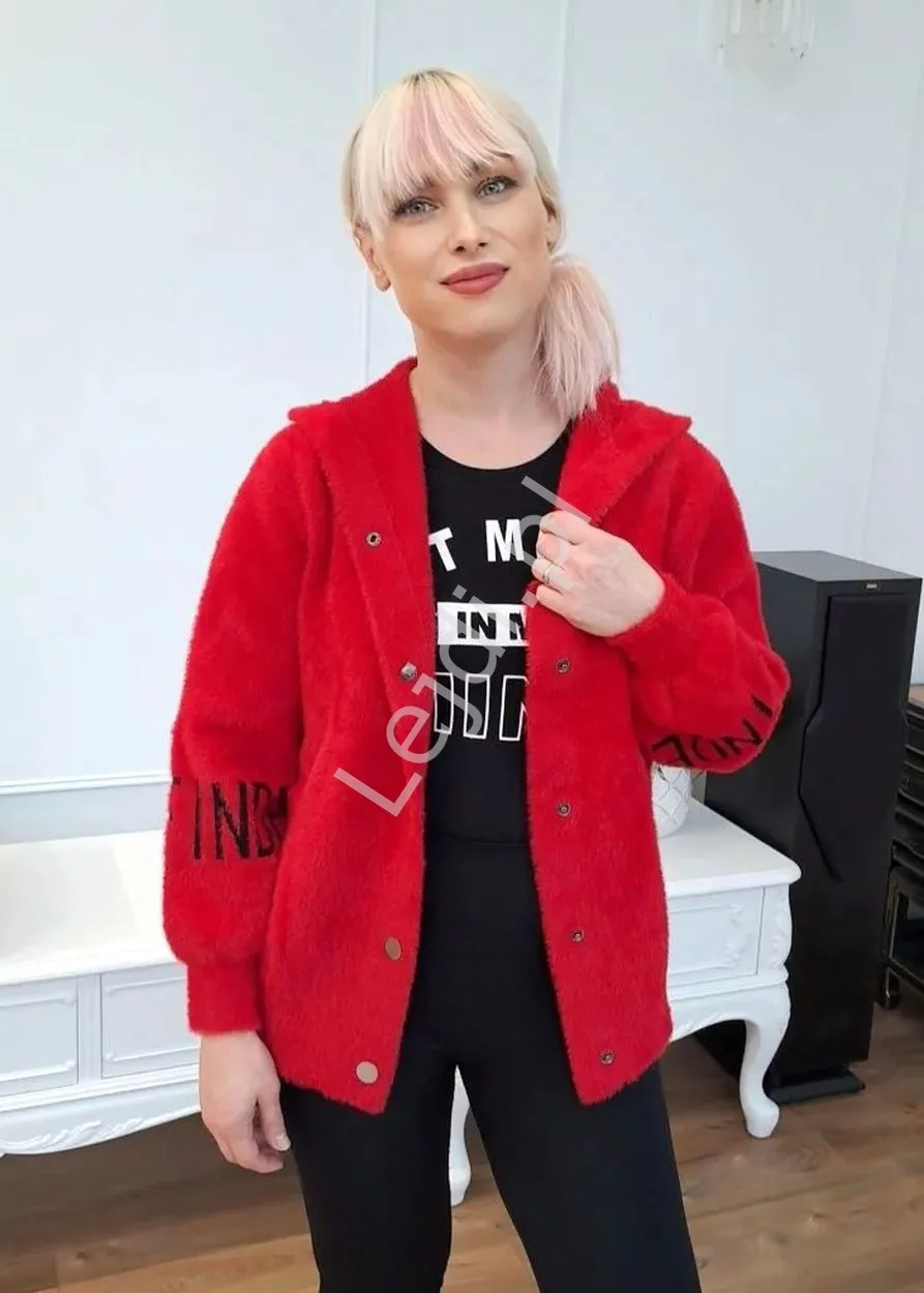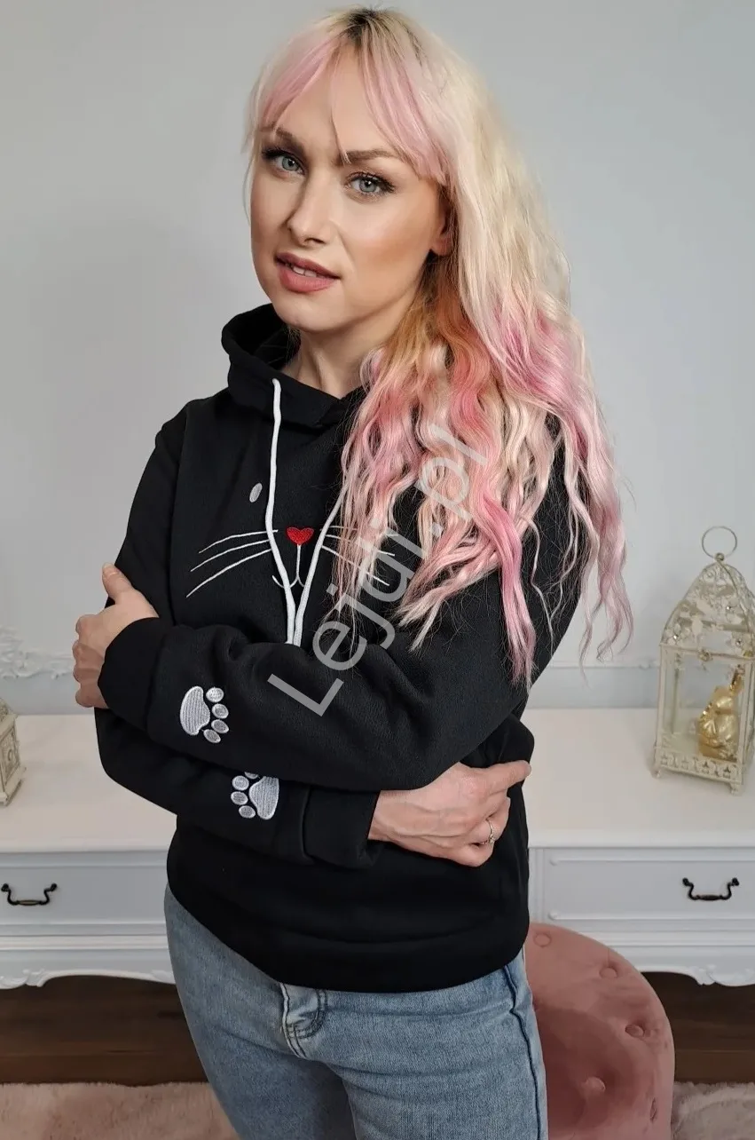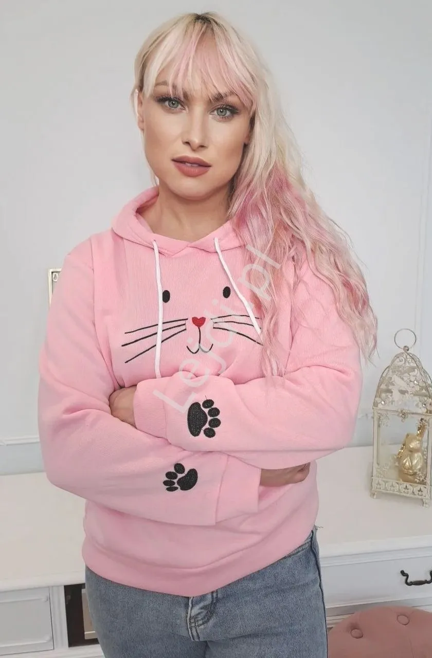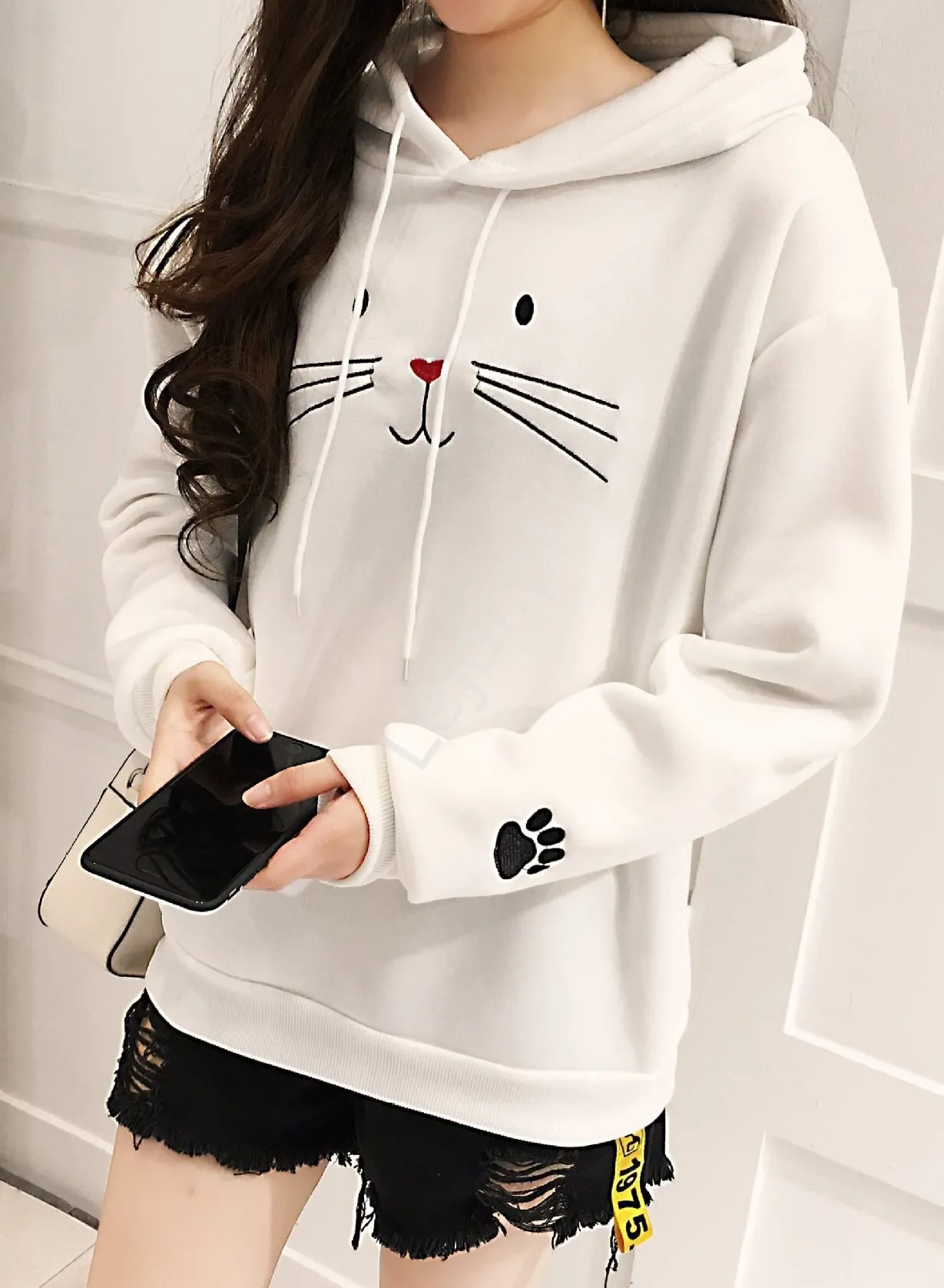Biała bluza z kapturem na przodzie z kotkiem 3811/ 017