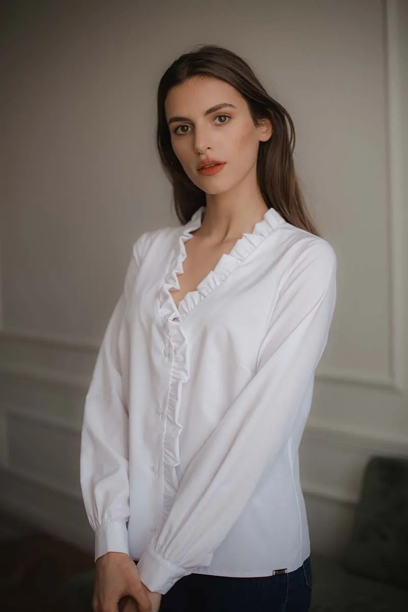 Czarna Bluzka z Dekoltem V z Falbanką Z
