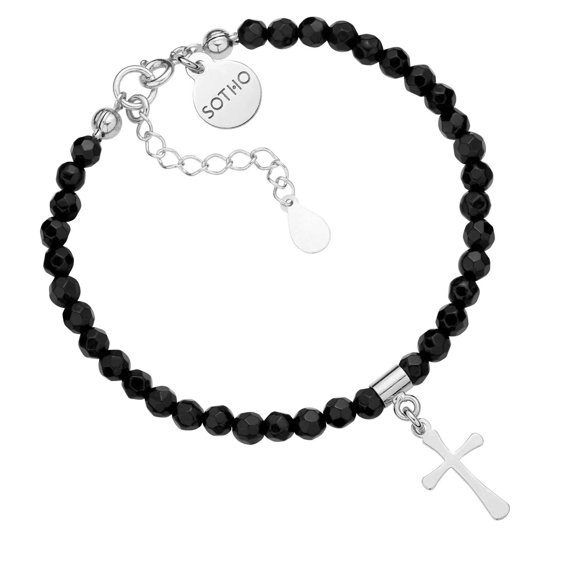 Czarna bransoletka z fasetowanego onyksu ze srebrnym krzyżykiem