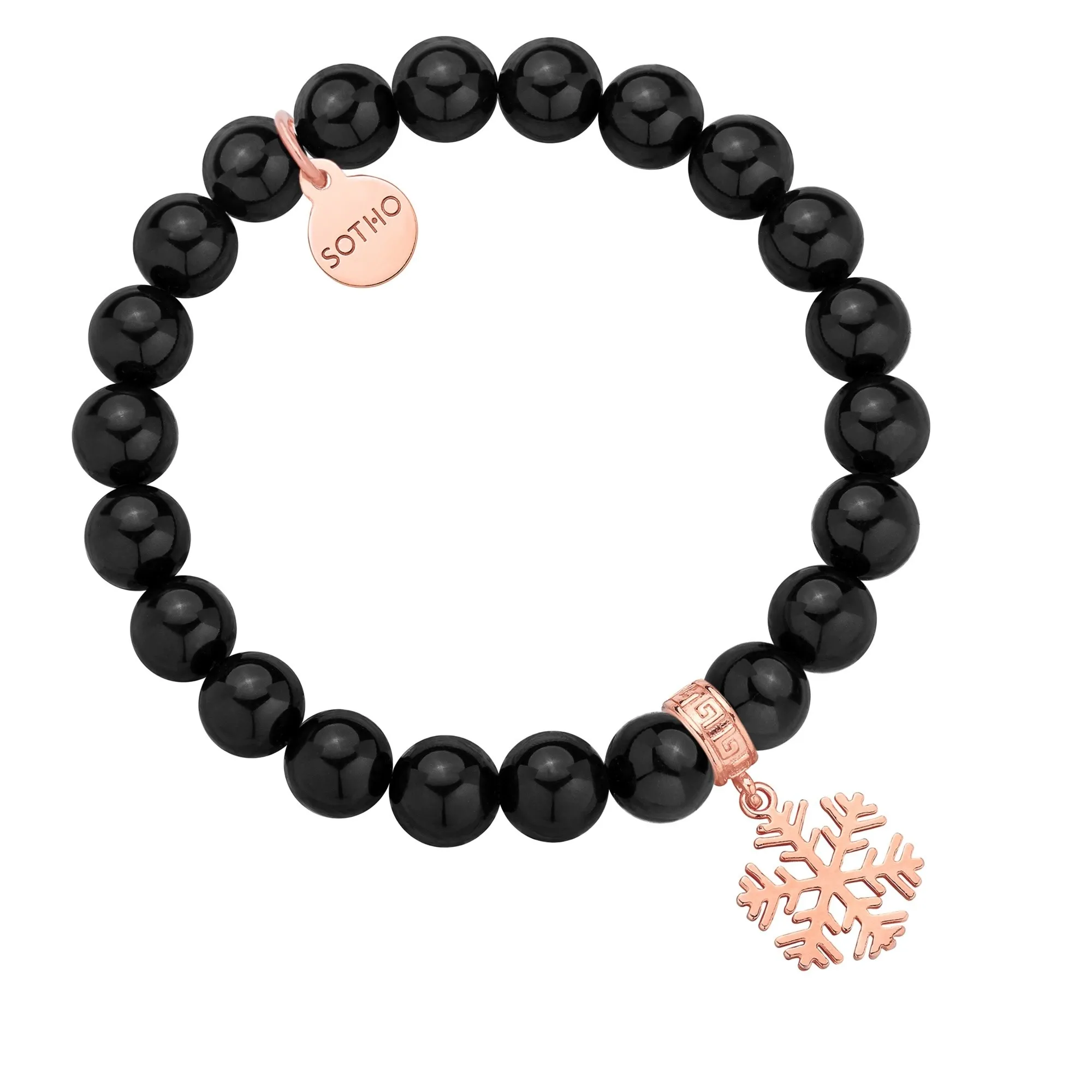 Czarna bransoletka z onyksu ze śnieżynką z różowego złota