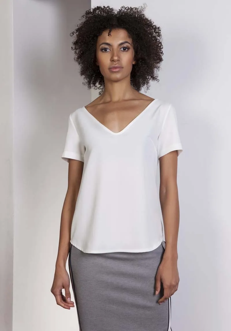 Czarna Casualowa Lekka Bluzka z Dekoltem w Serek