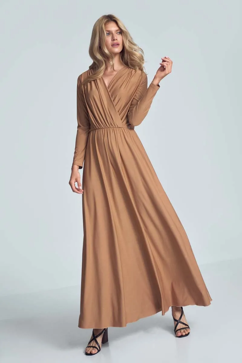 Czarna Długa Rozkloszowana Sukienka Kopertowa