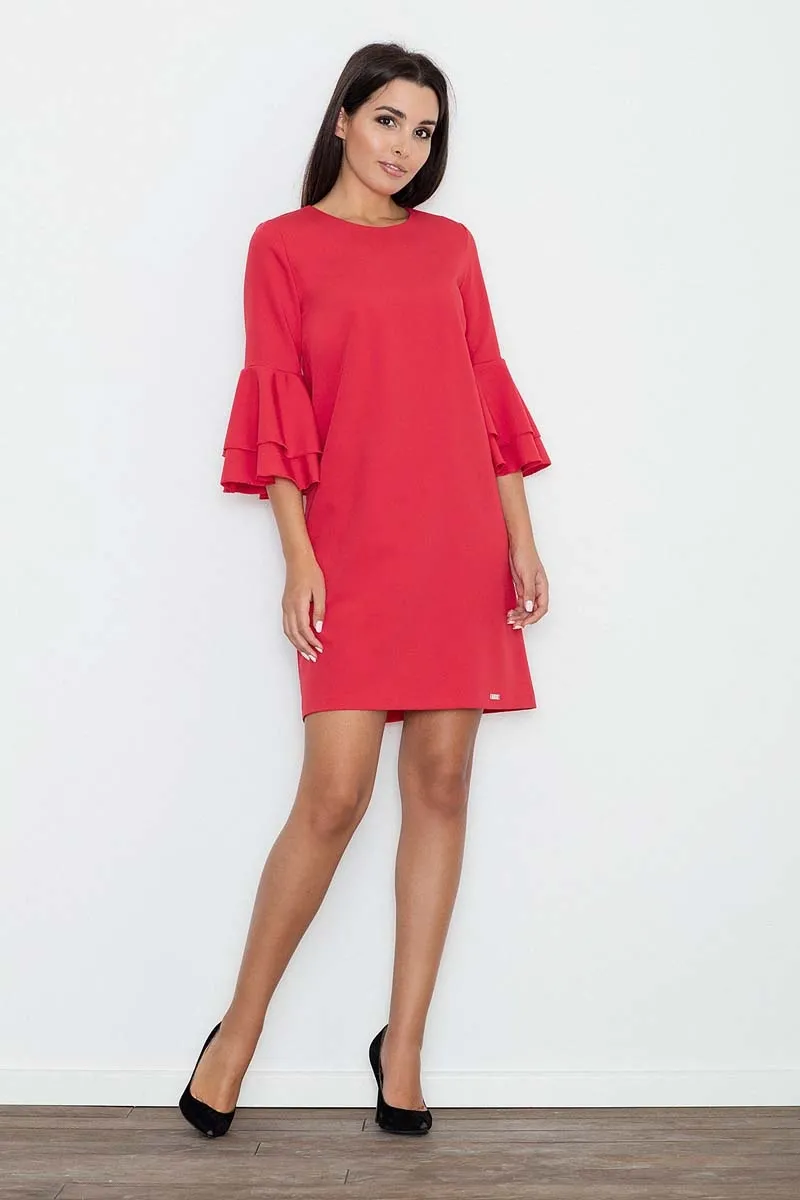 Czerwona Elegancka Sukienka z Hiszpańskim Rękawem