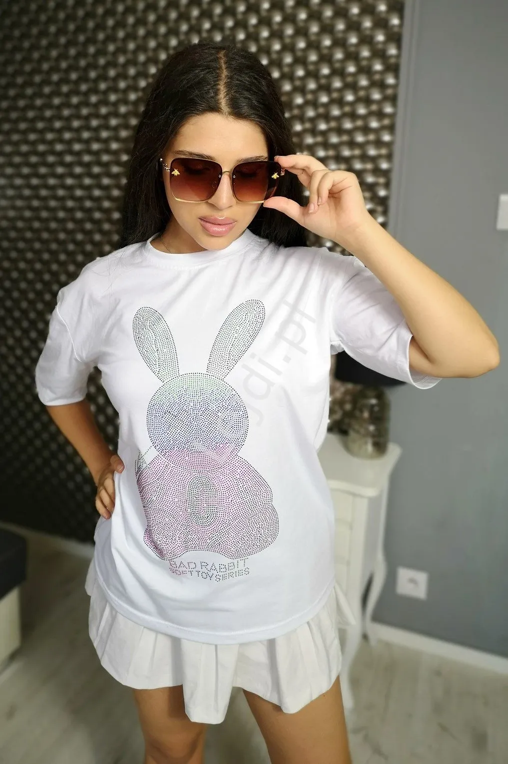 Czarna bawełniana koszulka z trampkami zdobionymi kryształkami i cekinami. Zdobiony t-shirt damski w czarnym kolorze. Modne koszulki damskie.