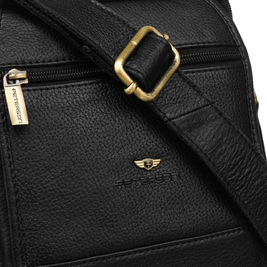Skórzana, dwukomorowa listonoszka męska w czarnym kolorze zawieszona na regulowanym pasku PTN 251-NSH Peterson