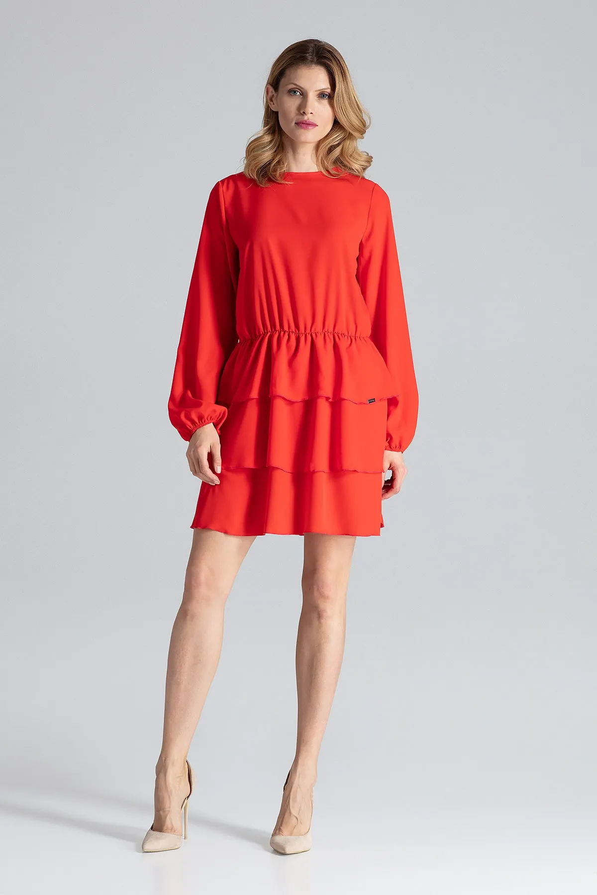 Czerwona Romantyczna Wyjściowa Sukienka z Długimi Bufiastymi Rękawami