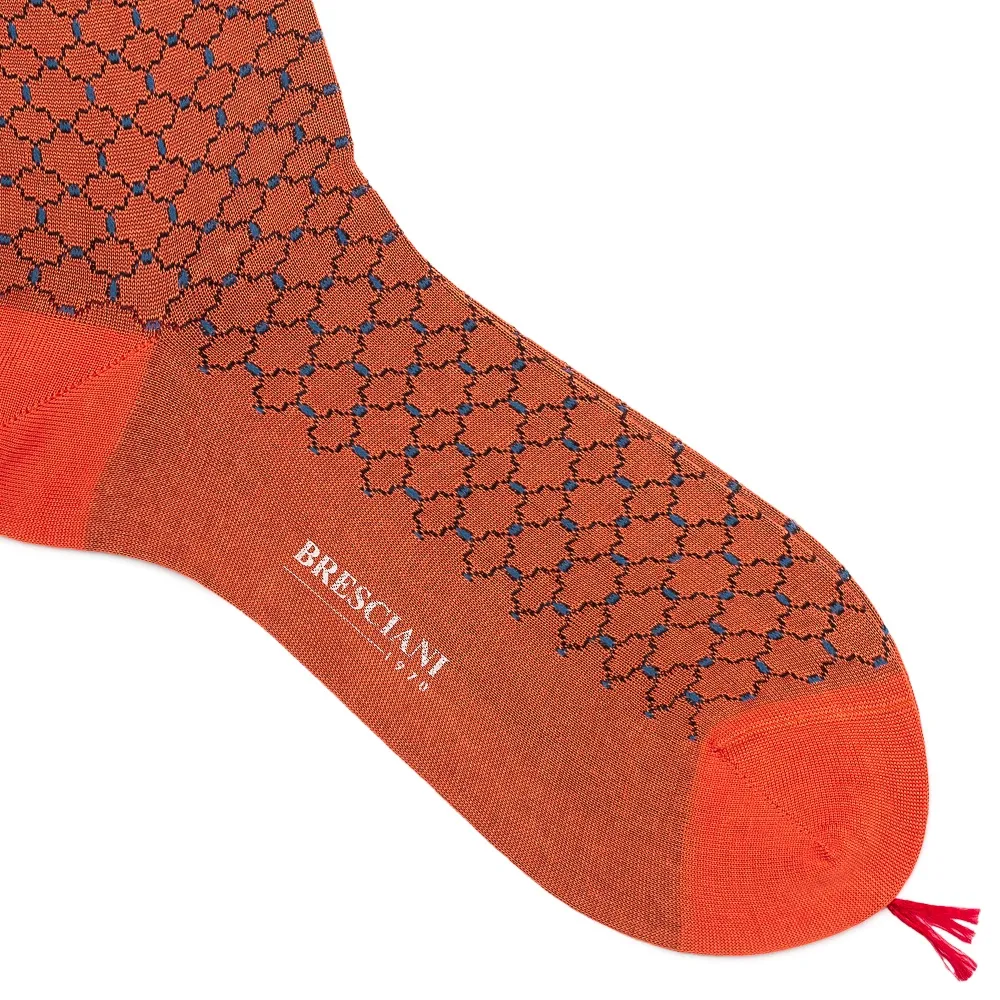 Bawełniane pomarańczowe skarpetki męskie w błękitny geometryczny wzór. S