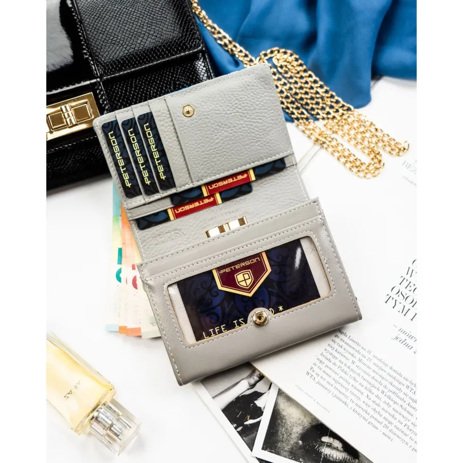 Mały, zielony portfelik damski ze skóry naturalnej z systemem RFID PTN PH33-LFL Peterson