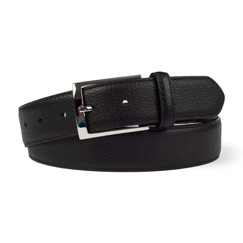 Czarny skórzany pasek to klasyka w modzie męskiej. Pasek męski VAN THORN będzie ważnym dodatkiem w dobrze zaplanowanej męskiej garderobie. VAN THORN proponuje wysokiej jakości skórzany czarny pasek ze skóry cielęcej, który sprawdzi się w eleganckich stylizacjach. Naturalna skóra najwyższej jakości sprawi, że pasek męski będzie służył długie lata, dlatego też warto zakupić go do ponadczasowej szafy kapsułowej. Pasek ma również miękkie, skórzane wykończenie po wewnętrznej stronie oraz automatyczną klamrę, która gwarantuje wygodę i precyzyjne dopasowanie. Klasyczne, uniwersalne kolory w szafie to gwarancja tego, że twoje stylizacje modowe będą zawsze modne. Pasek jest uniwersalny, ponieważ możesz go zarówno ubrać do eleganckich garniturowych spodni jak i do stylizacji w codziennej odsłonie na bazie chino lub jeansów. Czarny skórzany pasek VAN THORN – uniwersalny modowy dodatek szyty w Hiszpanii W szafie nowoczesnego mężczyzny nie może zabraknąć kilku wysokiej jakości pasków do spodni.