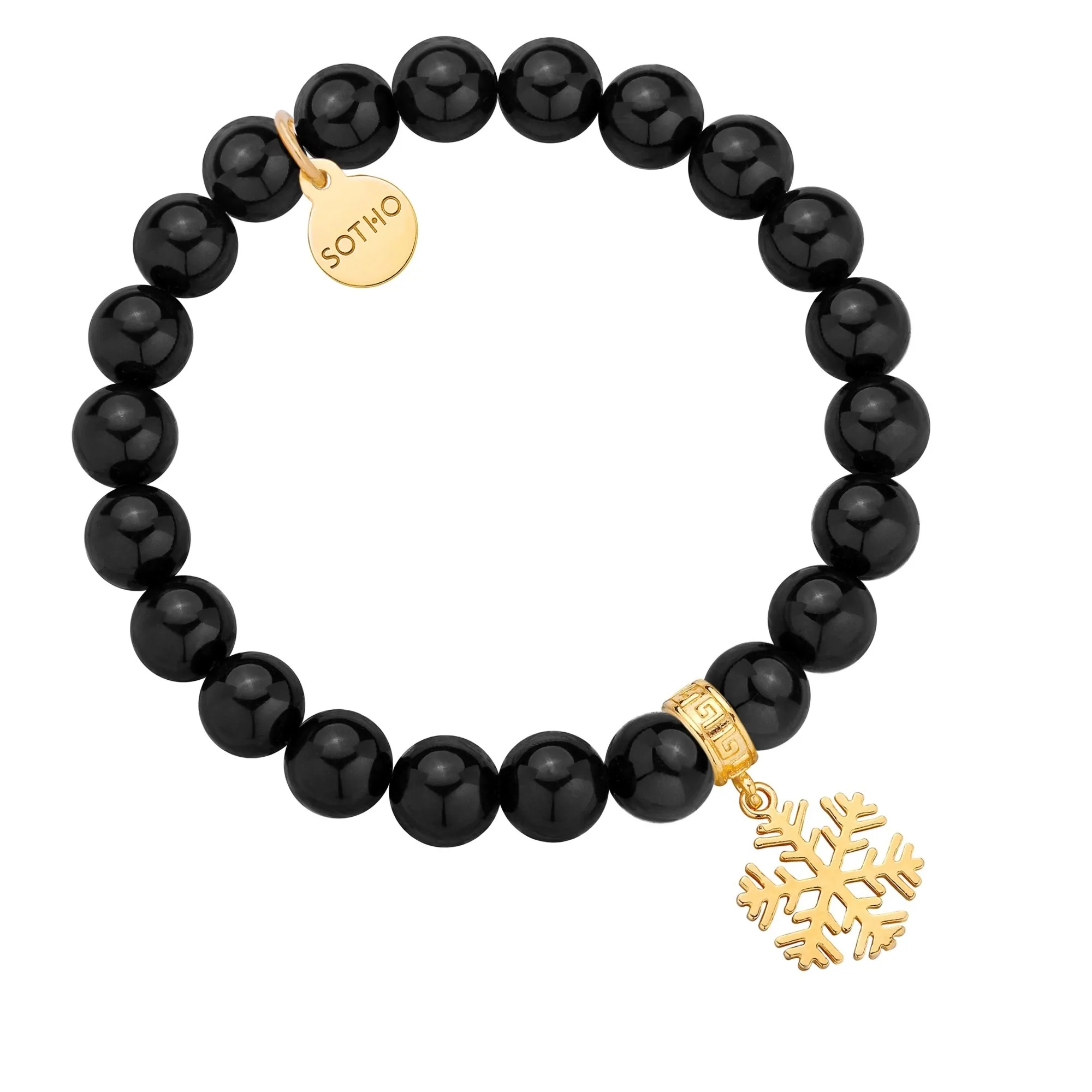 Czarna bransoletka z onyksu ze złotą śnieżynką