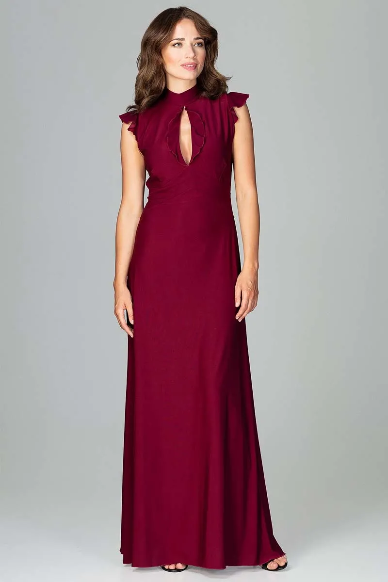 Bordowa Subtelna Długa Sukienka z Falbankami