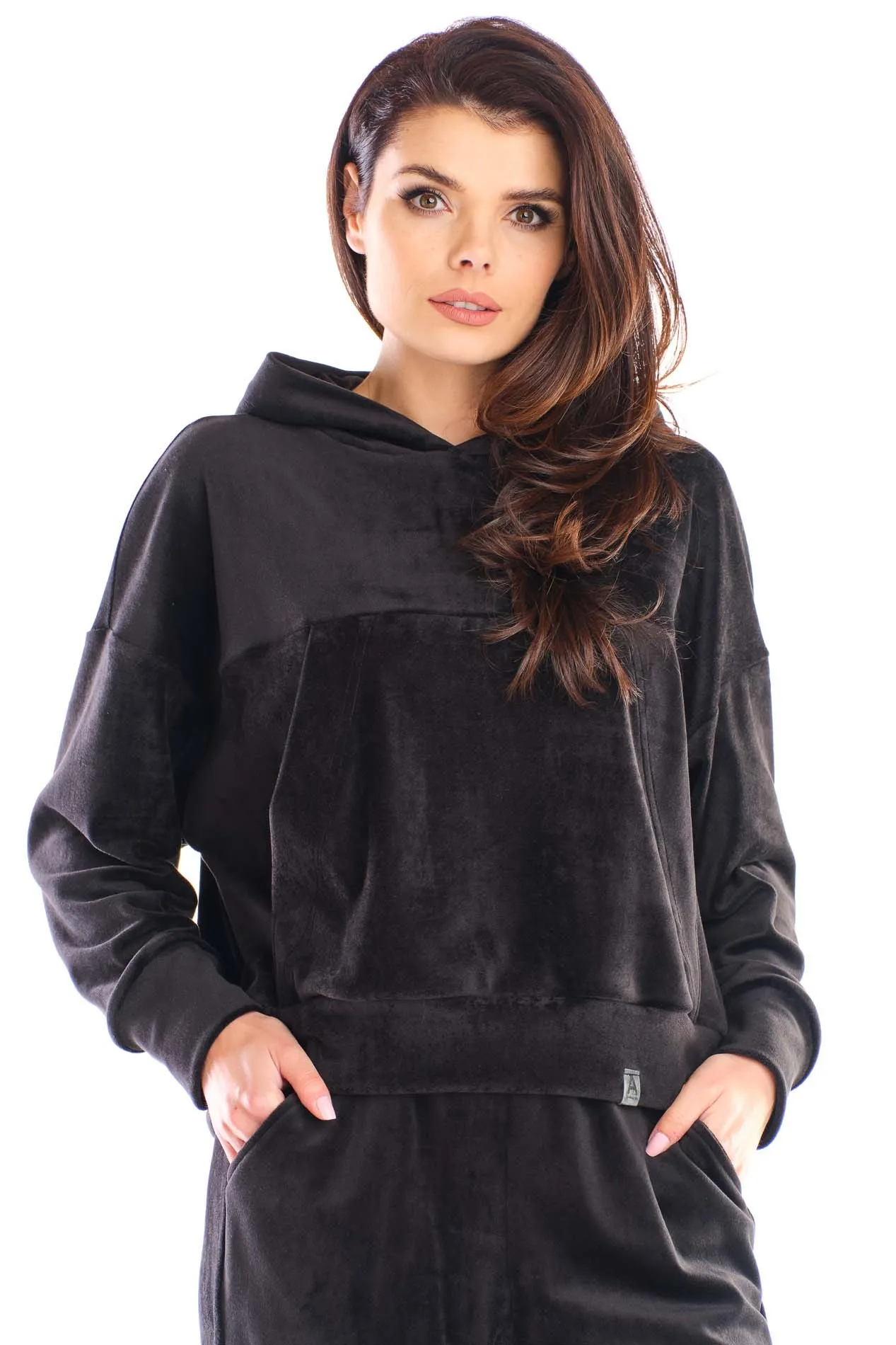Damska Bluza Typu Kangurka z Weluru - Czarna