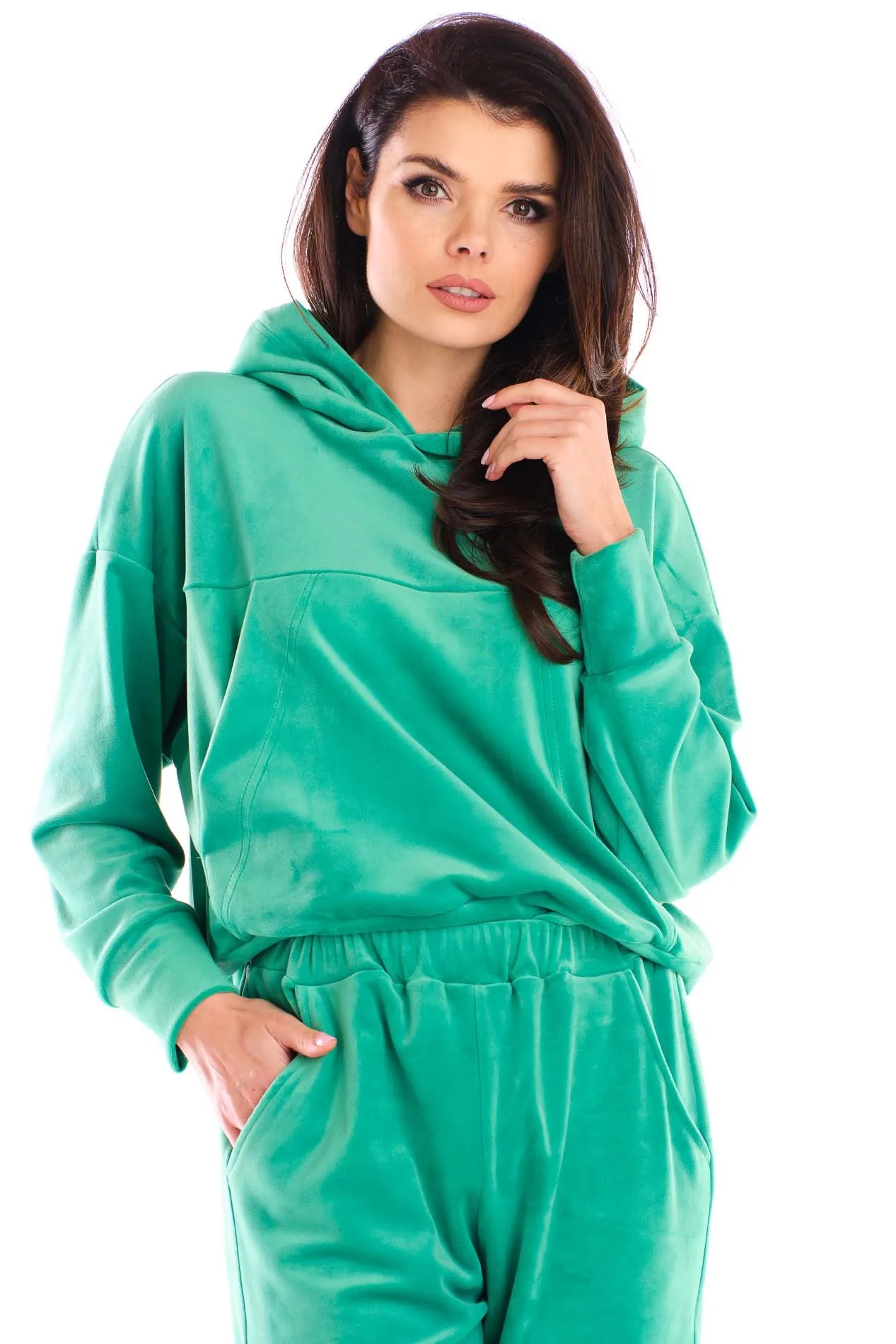Damska Bluza Typu Kangurka z Weluru - Zielona