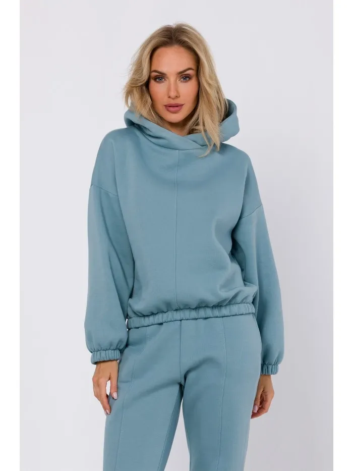 Z dumą prezentujemy naszą najnowszą bluzę z kapturem w kolorze agawa, idealną propozycję dla tych, którzy poszukują połączenia wygody i stylu. Wykonana z miękkiej i przyjemnej w dotyku dzianiny dresowej, która została delikatnie drapana od spodu, ta bluza zapewni Ci nie tylko komfort termiczny, ale także wyjątkowy komfort noszenia. Prosty fason, zakładany przez głowę, sprawia, że ubieranie i zdejmowanie bluzy jest szybkie i łatwe. Dekoracyjne pionowe przeszycie na przodzie dodaje bluzie charakteru, nadając jej subtelny, ale wyrazisty akcent. Długie rękawy oraz dolny brzeg zakończone wszytą gumą nie tylko dodają bluzie estetycznego wykończenia, ale także zapewniają lepsze trzymanie i dopasowanie do sylwetki. Nasza modelka, o wzroście 171 cm, nosi rozmiar S, co gwarantuje idealne dopasowanie do różnorodnych sylwetek. Projektowane i uszyte z dbałością o każdy detal w Polsce, ta bluza to efekt połączenia lokalnej produkcji z wysoką jakością wykonania.
