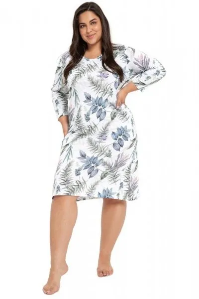 Koszula damska- z rękawem 3/4- wysokiej jakości bawełna- przód ozdobiony delikatnym nadrukiem- półokrągły dekolt- długość do kolanaSkład: 100% bawełna…