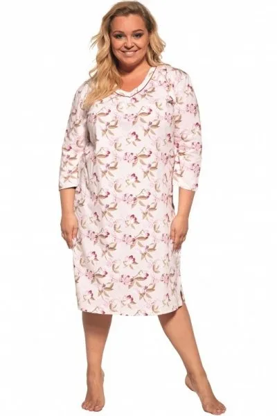 Koszula damska- z wysokiej jakości bawełny- przód z nadrukiem i roślinnym printem- półokrągły dekolt- rękaw 3/4- długość do kolana Skład: 100% bawełna…