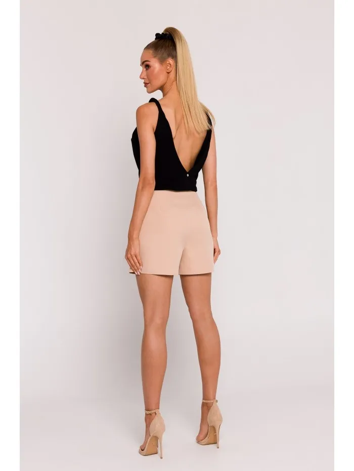 Damskie spodenki szorty z zakładkami – beżowe – Rozmiar: L