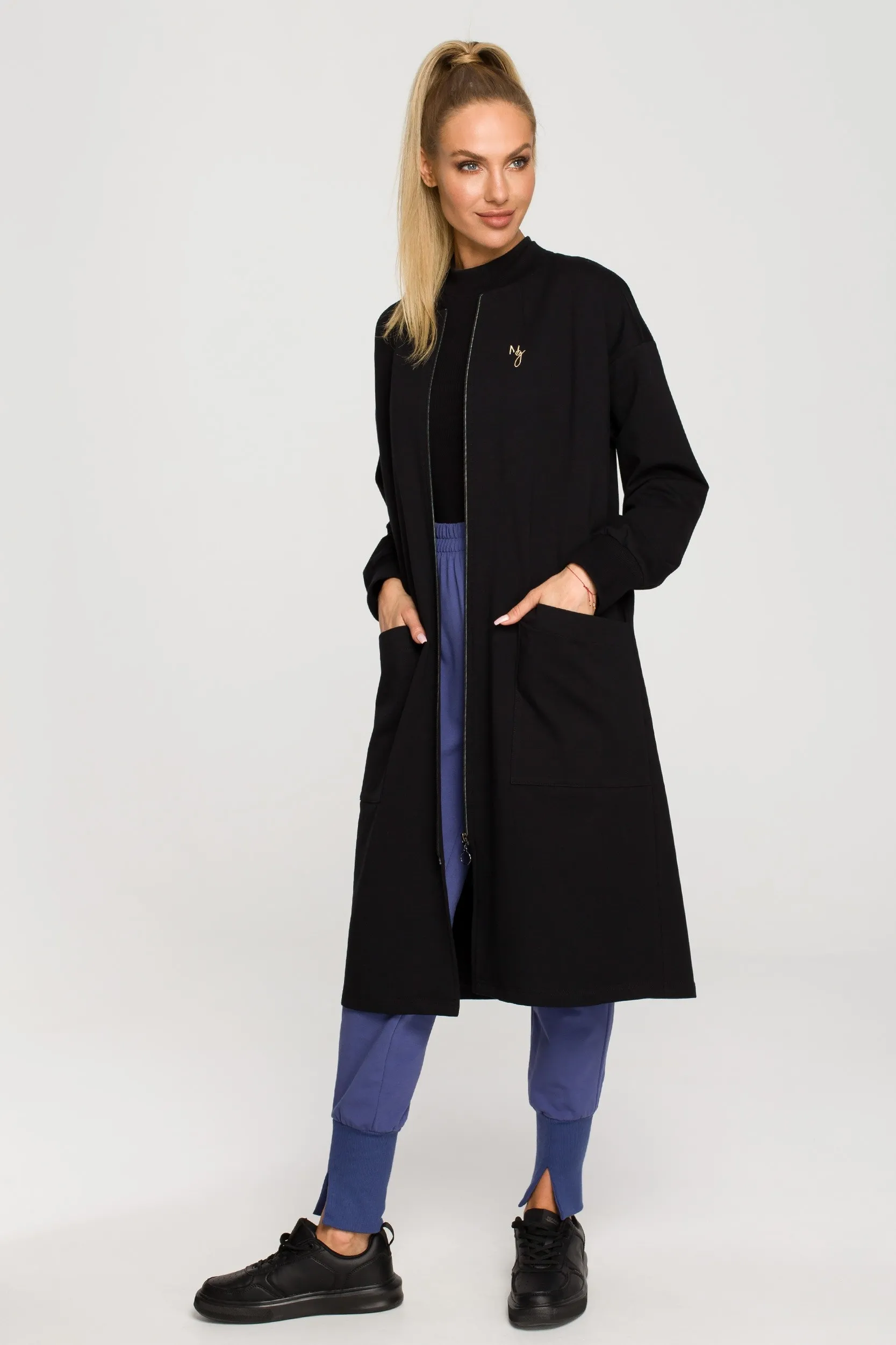 Długa bluza z rozcięciem - czarna - Rozmiar: L