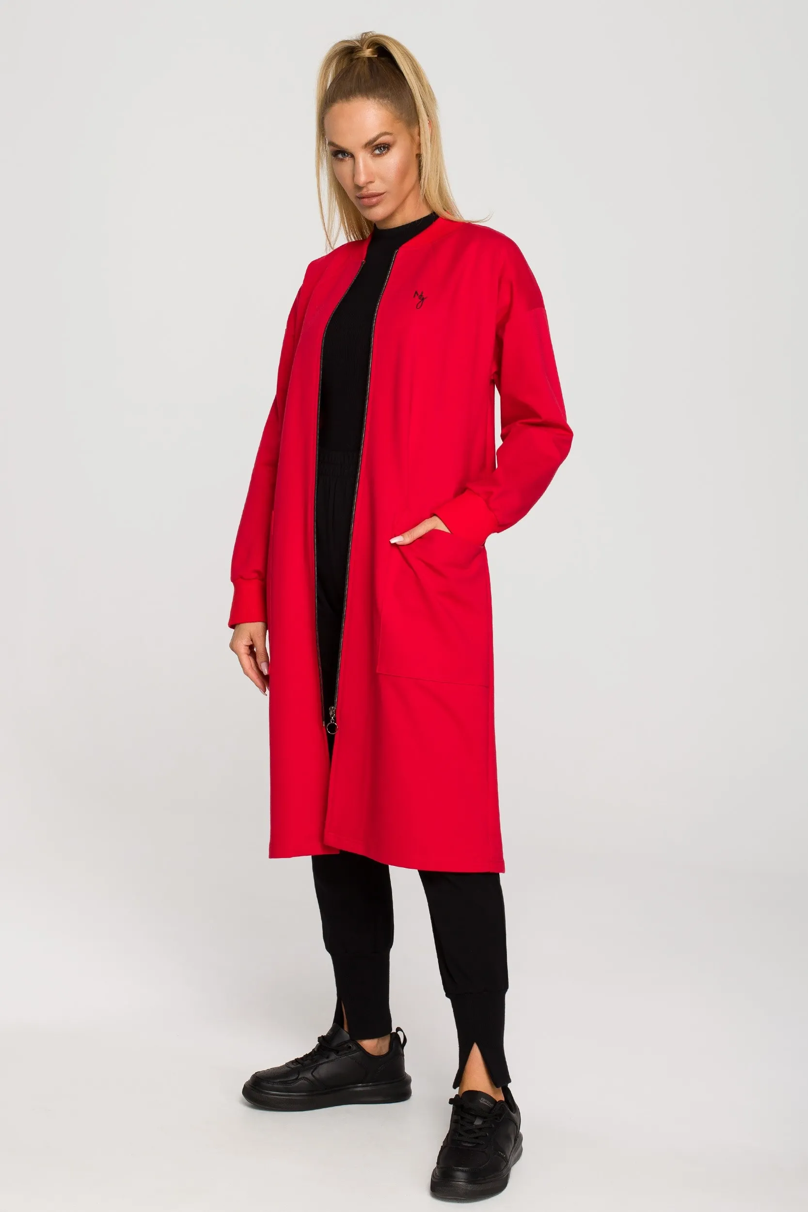 Długa bluza z rozcięciem – czerwona – Rozmiar: S