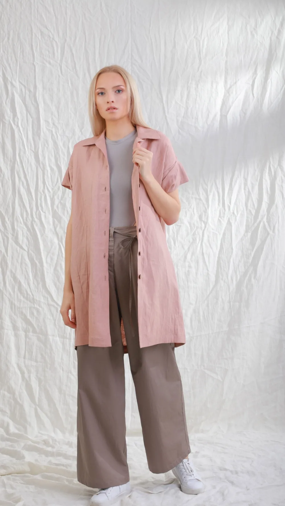 Długa koszula lniana Stjarna Brudny róż 20a