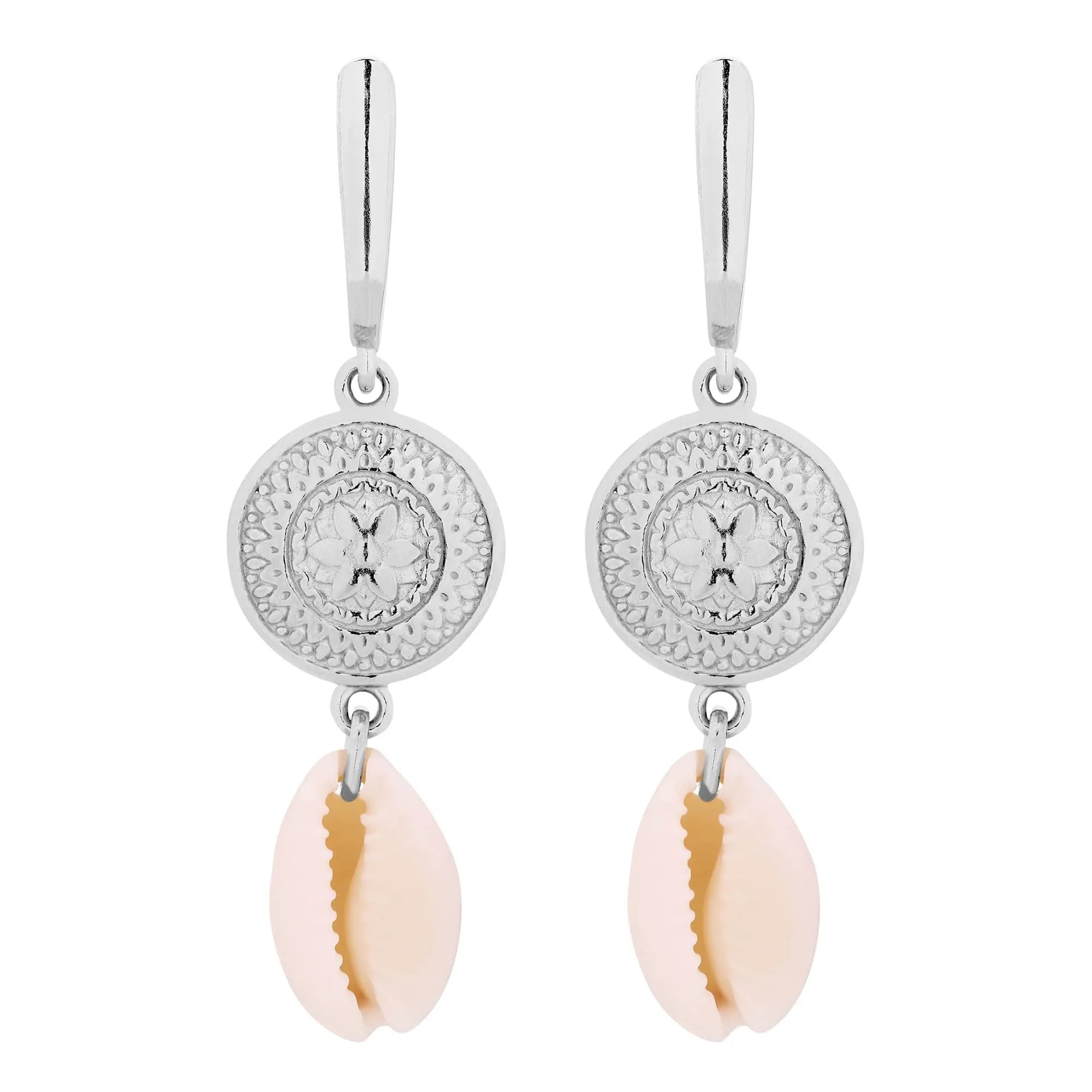 Srebrne długie kolczyki z rozetami i muszelkami