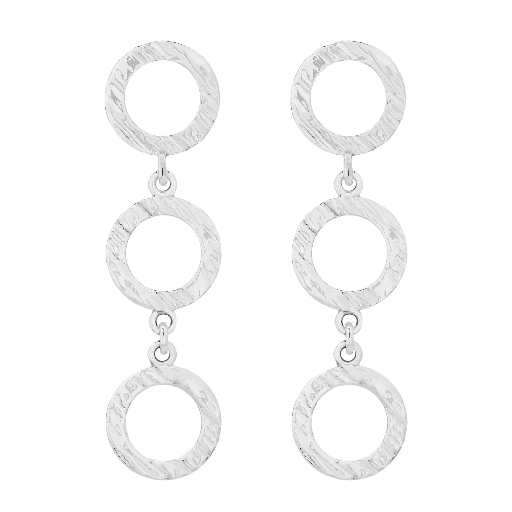Złote długie kolczyki potrójne chropowate koła. Zapinane na sztyft. Kolczyki posiadają zapięcia (baranki). Całość wykonana ze srebra 925 powlekanego 24 karatowym różowym złotem. Długość kolczyków ok. 4,5 cm Średnica kół ok. 1,2 cm Zapakowane w eleganckie pudełeczko z logo marki. Produkt o wadze poniżej 5 g. Posiadają logowaną metkę. Istnieje możliwość zamówienia kolczyków w wersji ze srebra 925 lub srebra 925 powlekanego 24 karatowym żółtym złotem, z inną ilością kół, z dodatkowymi zawieszkami, kamienieniami, perłami lub kryształami SWAROVSKI® CRYSTAL itp.