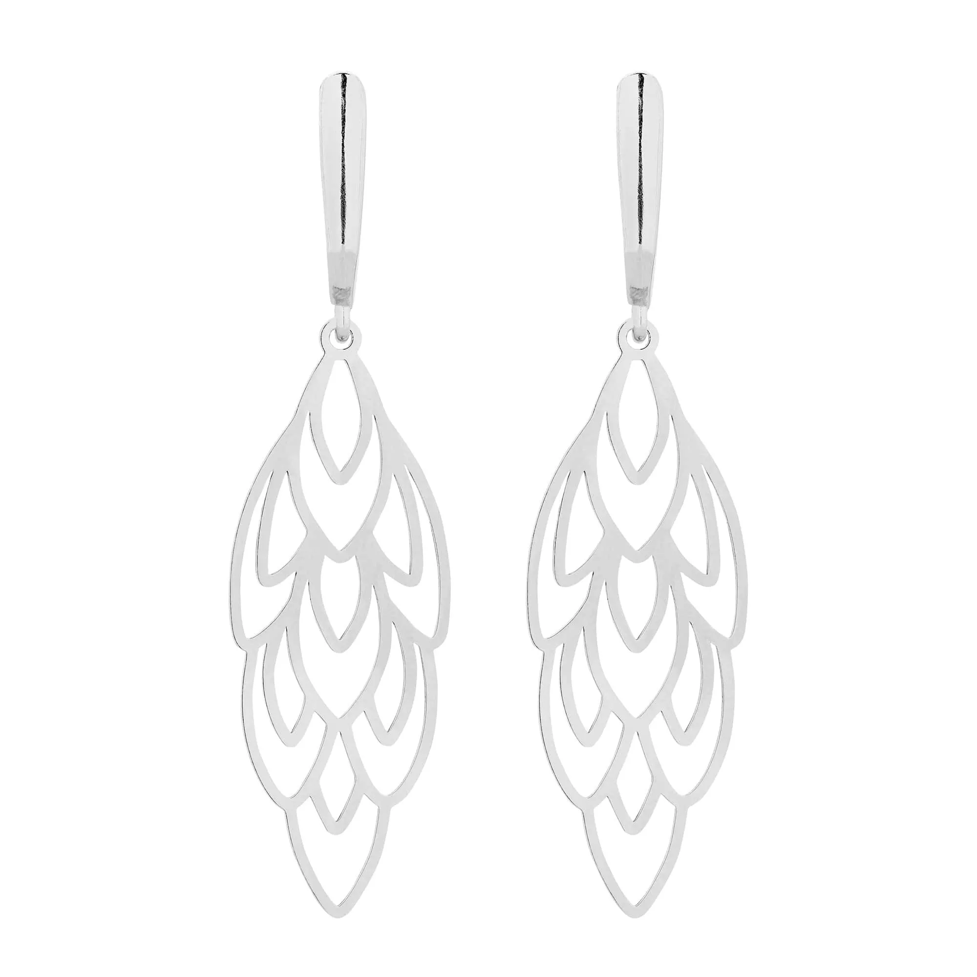 Złote długie kolczyki z ażurowymi rozetami. Zapinane na bigle angielskie. Całość wykonana ze srebra 925 powlekanego 24 karatowym różowym złotem. Długość kolczyków ok. 5,1 cm Rozeta 3,4 x 1,2 cm Zapakowane w eleganckie pudełeczko z logo marki. Produkt o wadze poniżej 5 g. Posiadają logowaną metkę. Istnieje możliwość zamówienia kolczyków w wersji ze srebra 925 lub srebra 925 powlekanego 24 karatowym żółtym złotem, na innych biglach, klipsów, z dodatkowymi zawieszkami, kamienieniami, perłami lub kryształami SWAROVSKI® CRYSTAL itp.