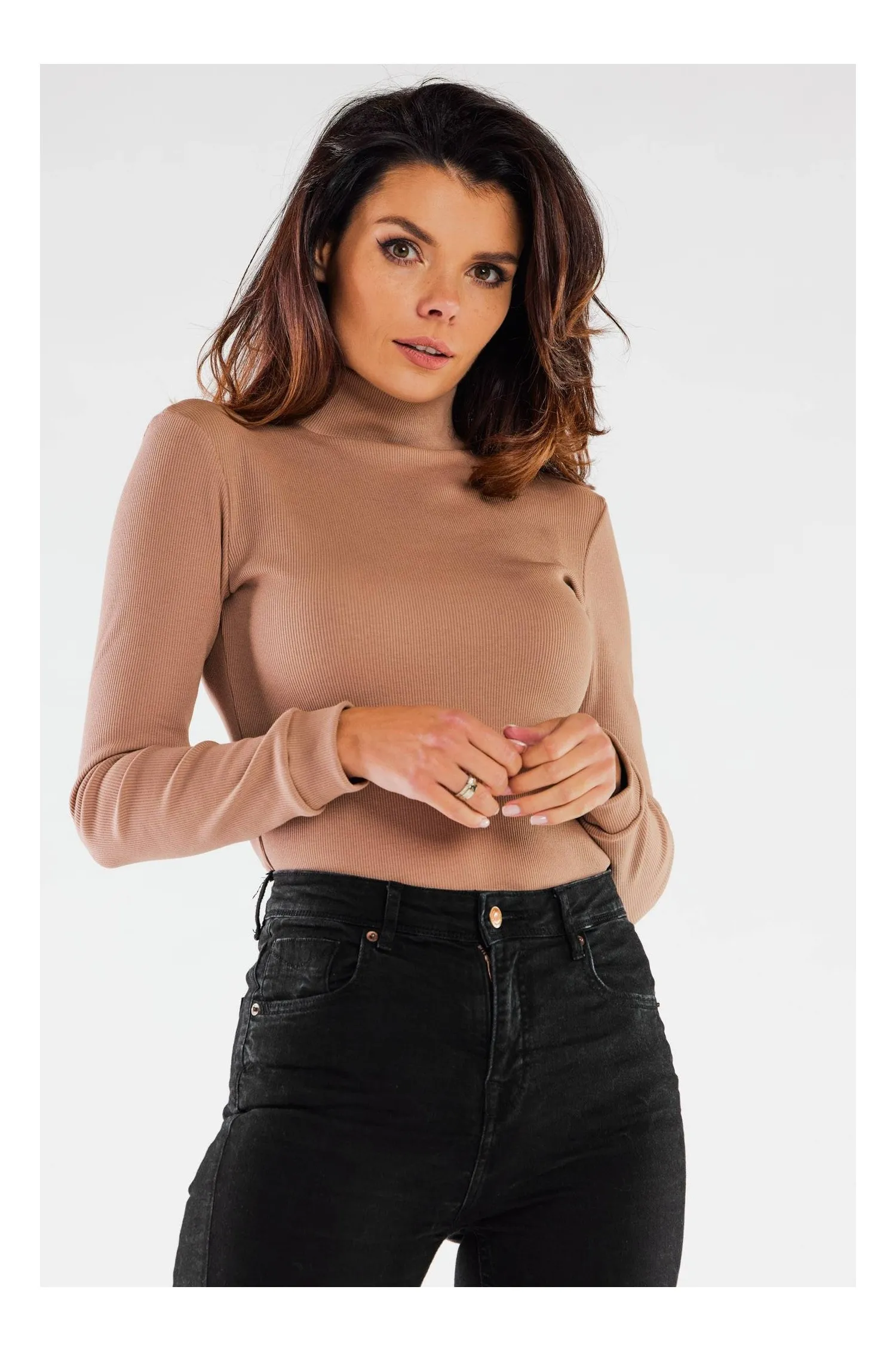 Dopasowana bluzka bawełniana długi rękaw – beżowa