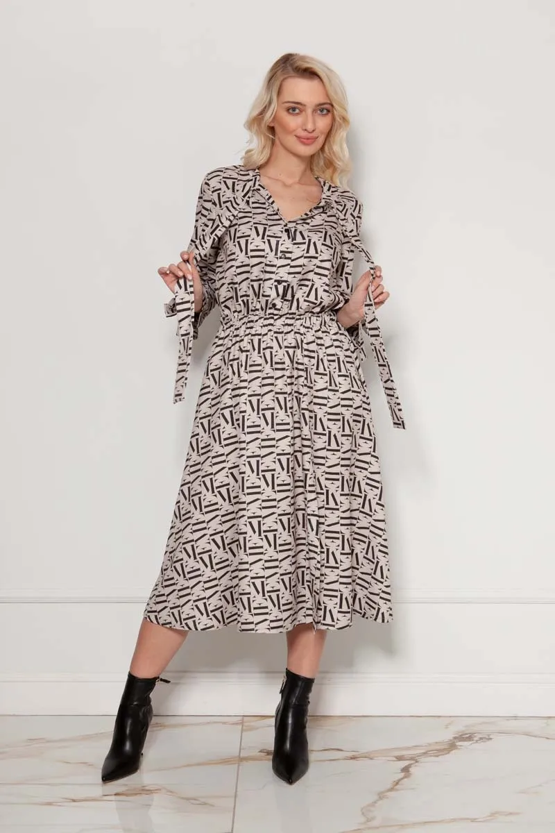 Dopasowana Sukienka z Troczkami na Bokach – Zielona