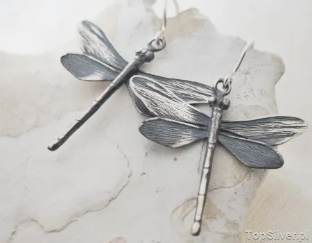 Oryginalne i niezwykle efektowne kolczyki, w których połączono srebrnego oksydowanego dragona z kryształem zakutym w srebrną oprawkę. Wymiar kamienia 10 x 14mm. Dłygość kolczyków z zapieciem 6,5cm. Szerokość smoka (w skrzydłach) 2,2cm. Srebro próby 925.
