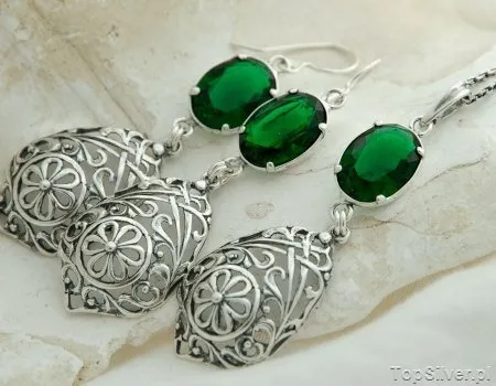 Oryginalne i niezwykle efektowne kolczyki oraz wisior, w których połączenie srebrnego oksydowanego smoka z pięknie wybarwionym granatem (synt), zakutym w srebrną oprawkę stanowi unikalne połączenie. Jest to wyrób dla miłośników piękna oraz doskonały prezent. Wymiar kamienia 6x8mm Długość kolczyków z zapieciem 6,4cm. Szerokość smoka (w skrzydłach) 2,2cm. Srebro próby 925. Jeśli szukasz takich kolczyków z innym kamieniem a nie ma ich w naszej ofercie to napisz do nas – zrobimy je specjalnie dla Ciebie. Warto… Do kompletu posiadamy także pierścień smoka.