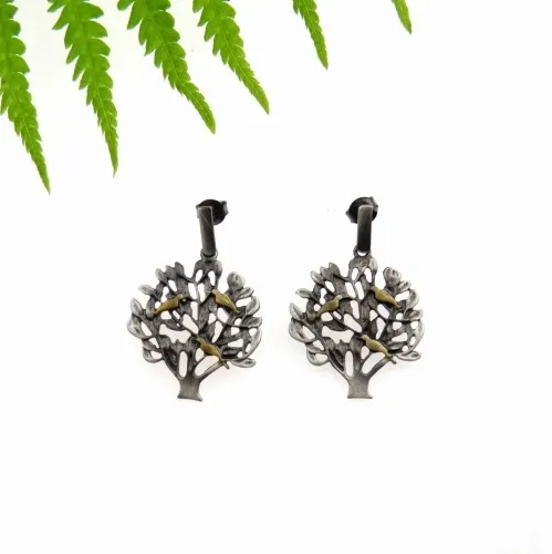 Zawieszka wykonana ze srebra w kształcie drzewka szczęścia. Wymiary drzewka: 2,4 cm na 2,4 cm. Całkowita długość 3,3 cm. Waga: 3,5 g. Zawieszka wykończona oksydą grafitową, ptaszki pomalowane złotem. Zawieszka sprzedawana bez łańcuszka.
