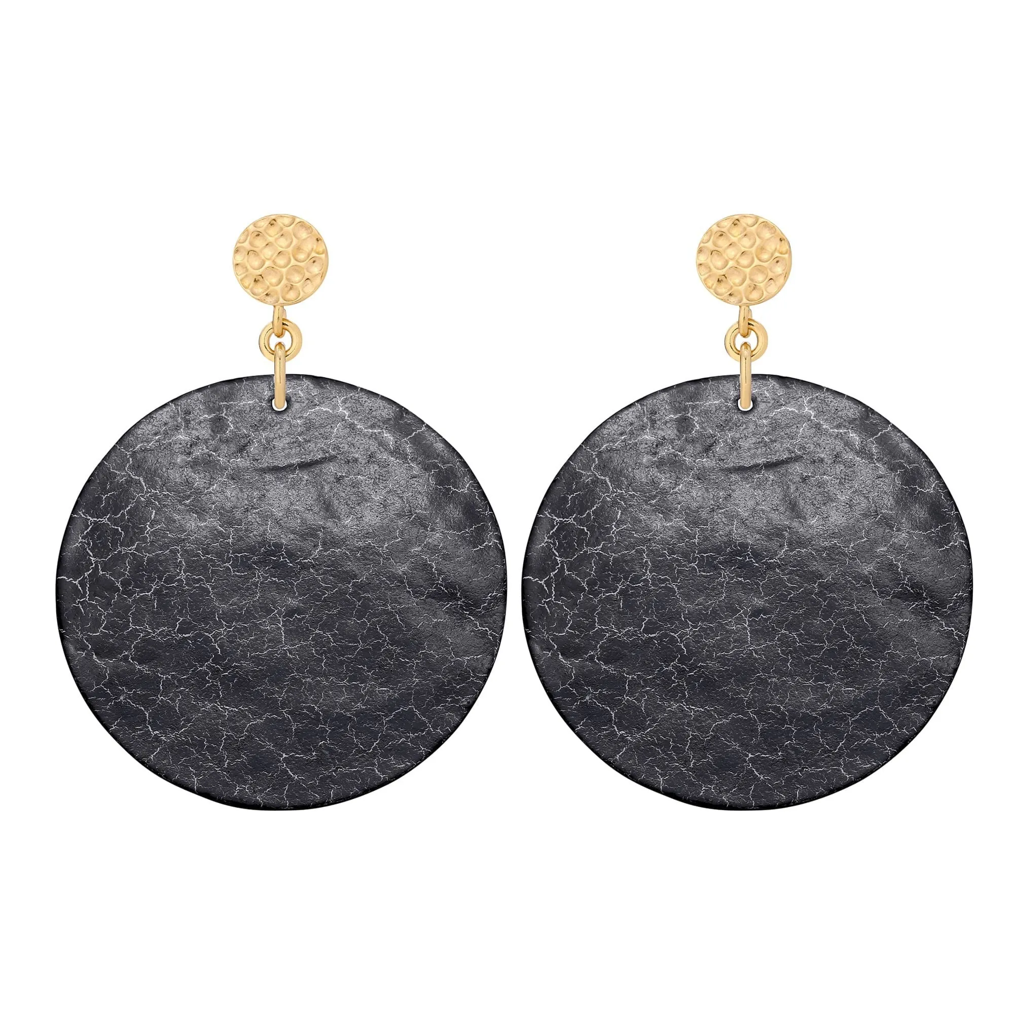 Duże kolczyki z burgundowo-granatowej masy perłowej. Całość wykonana ze srebra 925 powlekanego 24 karatowym żółtym złotem. Długość kolczyków 5,8 cm Masa perłowa 4,5 cm Produkt o wadze poniżej 5 g. Zapakowane w eleganckie pudełeczko z logo marki. Posiadają logowaną metkę. Istnieje możliwość zamówienia kolczyków z innym kolorem masy perłowej, z dodatkową zawieszką, w oprawie ze srebra 925 lub srebra 925 powlekanego 24 karatowym różowym złotem itp.