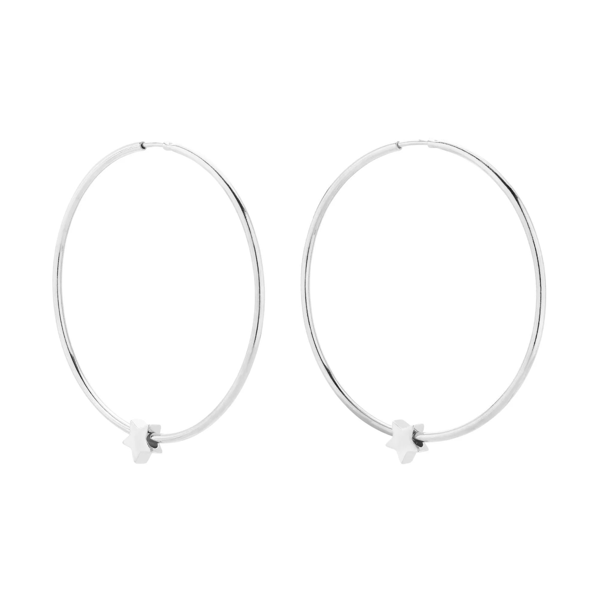 Duże, okrągłe, złote kolczyki zdobione gwiazdką. Całość wykonana ze srebra 925 powlekanego 24 karatowym różowym złotem. Średnica kolczyków ok 5,3 cm Gwiazdka 8 mm. Produkt o wadze poniżej 5 g. Zapakowane w eleganckie pudełeczko z logo marki. Posiadają logowaną metkę. Istnieje możliwość zamówienia kolczyków z innym modelem zawieszki, z kilkoma zawieszkami, w wersji ze srebra 925 lub srebra 925 powlekanego 24 karatowym żółtym złotem, z dodatkowymi kamieniami, perłami lub kryształami SWAROVSKI® CRYSTAL itp.
