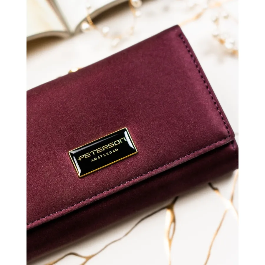 Fioletowy portfel damski wykonany ze skóry naturalnej i ekologicznej zamykany zatrzaskiem i biglem PTN PS108-HNL Peterson