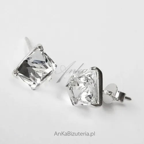 Srebrne kolczyki z kryształem górskim małe kwadraciki