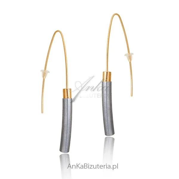 Kolczyki srebrne i pozłacane " długie pałeczki "