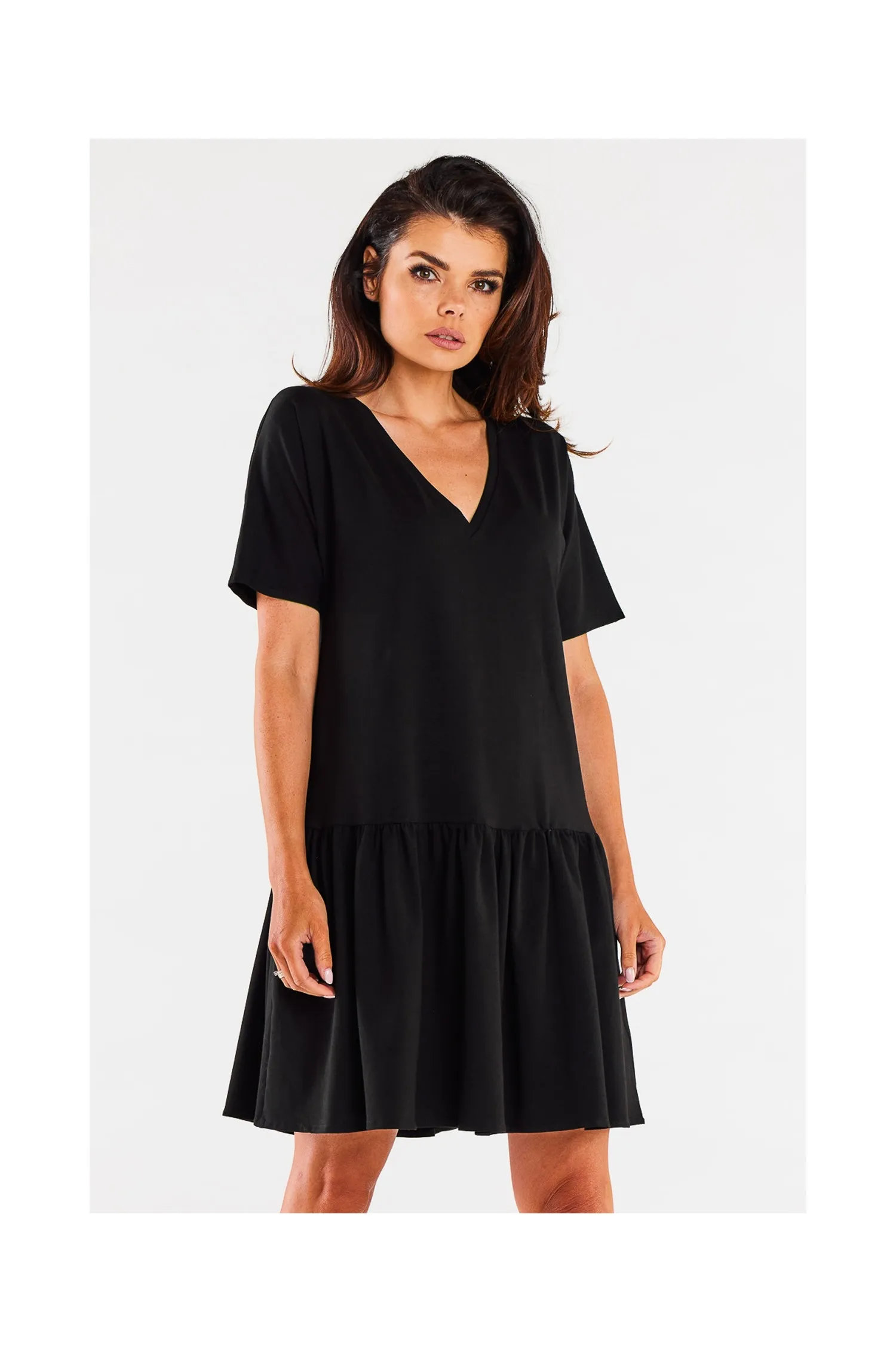 Czarna dzianinowa sukienka z falbanką – doskonale sprawdzi się w cieplejsze dnia na co dzień i na wieczorne wakacyjne wyjście z przyjaciółmi. To czym wyróżnia się ta sukienka to dekolt w literę V i falbana na dole. Sukienka nie opina nadmiernie sylwetki, dzięki czemu możesz swobodnie i wygodnie nosić ją każdego dnia. Została uszyta z przyjemnej w dotyku bawełnianej dzianiny. Ta sukienka pomoże Ci w stworzeniu wygodnych, a zarazem kobiecych stylizacji. Modelka ma 172 cm wzrostu i nosi rozmiar S/M Materiał: bawełna 95% elastan 5%