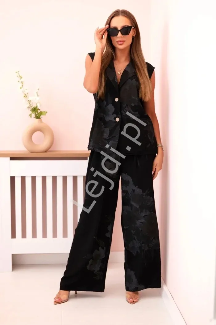 Komplet damski letni w kwiaty czarny kamizelka i spodnie 235