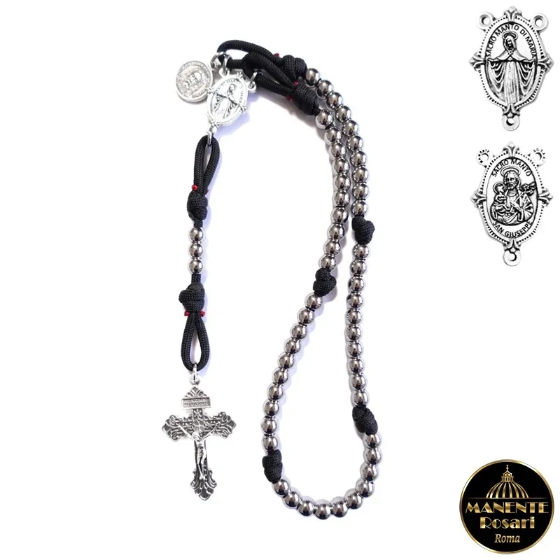 Dziesiątka różańca z medalikiem Św . Benedykta Krucyfiks Przebaczenia z napisami w języku włoskim. UWAGA; NA TEN MOMENT DOSTĘPNY JEST KOLOR CZARNY, , RÓŻOWY, BEŻOWY, Odporny i dyskretny różaniec, aby zawsze mieć go przy sobie, ta dziesiątka różańca ze stali i paracordu są idealne do trzymania w dłoni, gdy idziesz pobiegać lub po prostu decydujesz się na spacer na świeżym powietrzu … nic dziwnego, że jest popularny wśród sportowców , żołnierzy , policji , harcerzy . Paracord 550 – czyli linka spadochronowa – to nylonowa linka o wyjątkowych właściwościach, pochodzenia militarnego, zwykle stosowana w spadochronach, zawierająca 7 splotek wewnątrz, z których każda składa się z 7 innych nici o łącznej średnicy około 4 mm. Paracord nie gnije , jest bardzo stabilny w czasie i może wytrzymać obciążenie do 249 kg, co prawie równa się linie wspinaczkowej pomimo jej bardzo małych rozmiarów i wagi …